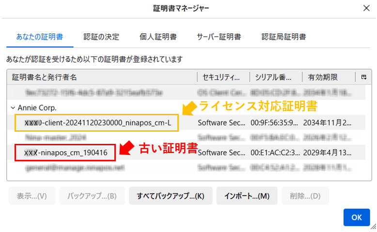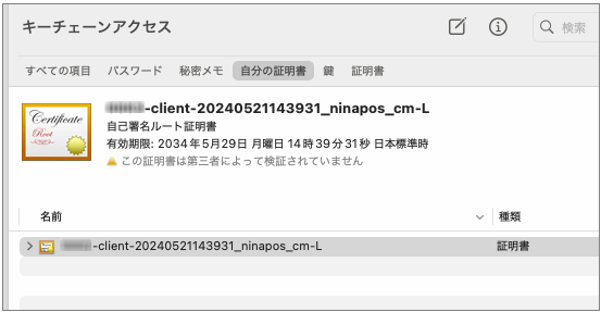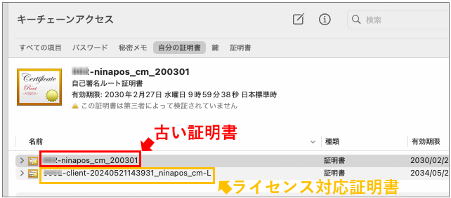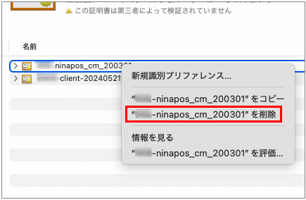 ライセンス対応のご案内から一定期間が過ぎた後、既存の「ninapos顧客管理」用の古いクライアント証明書を無効化させていただきます。